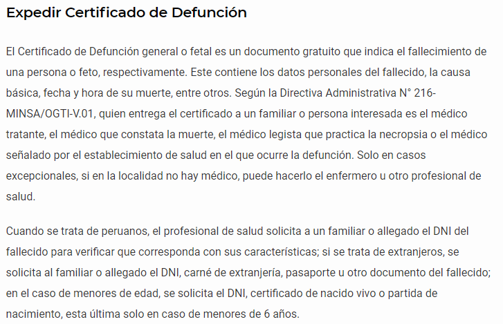 Al instante de la muerte de una persona, ya sea dentro o fuera de un hospital, se debe comunicar al Ministerio Público para que pueda remitir el acta de defunción.